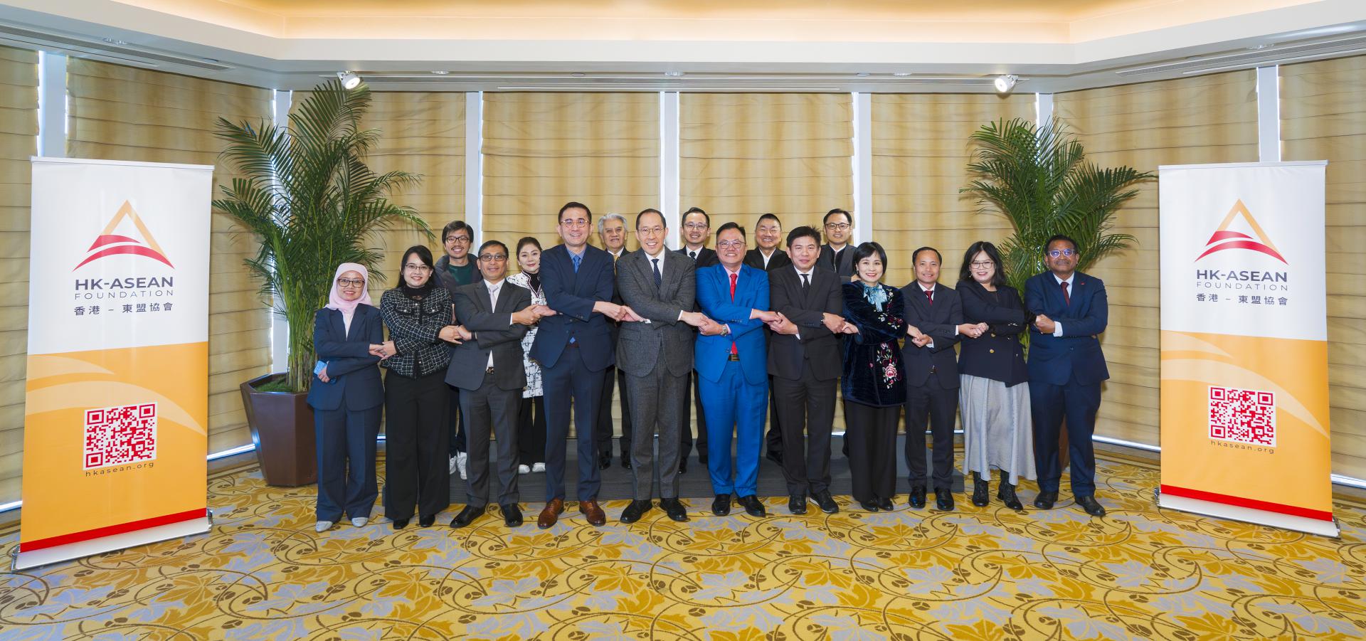 We were delighted to welcome Consuls-General from ASEAN member states: Ms Lim Kim Suan (Brunei Darussalam), Mr Ammala Saengchonghack (Laos), Mr Muzambli Markam (Malaysia), Ms Phoo Pwint Ko Ko (Myanmar), Mr Romulo Victor M Israel Jr (the Philippines), Mr Eric Teo Boon Hee (Singapore), Mr Chaturont Chaiyakam (Thailand), Mrs Le Duc Hanh (Vietnam); Mrs Fithonatul Mar'ati (Acting Consul-General of Indonesia) as well as distinguished guests and partners, including Mr Nicholas Ho, Commissioner for Belt and Road of the HKSAR Government; Mr Thomas Jefferson Wu, JP, Convenor of the Foundation's Advisory Council; and Advisory Council members Mr Daniel Fung, Dato' Seri Cheah Cheng Hye, and Ms Judy Chen.